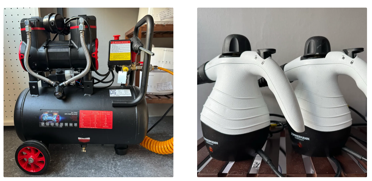 클리닝은 1명의 작업자가 10시간을 ‘쉬지 않고’ 작업하면 5대 정도가 가능했습니다. 1명이 1대를 클리닝하는 데 약 2시간이 걸리는 것입니다. 아직 대량의 클리닝이 익숙하지 않음을 감안해도, 너무나 오래 걸렸어요.