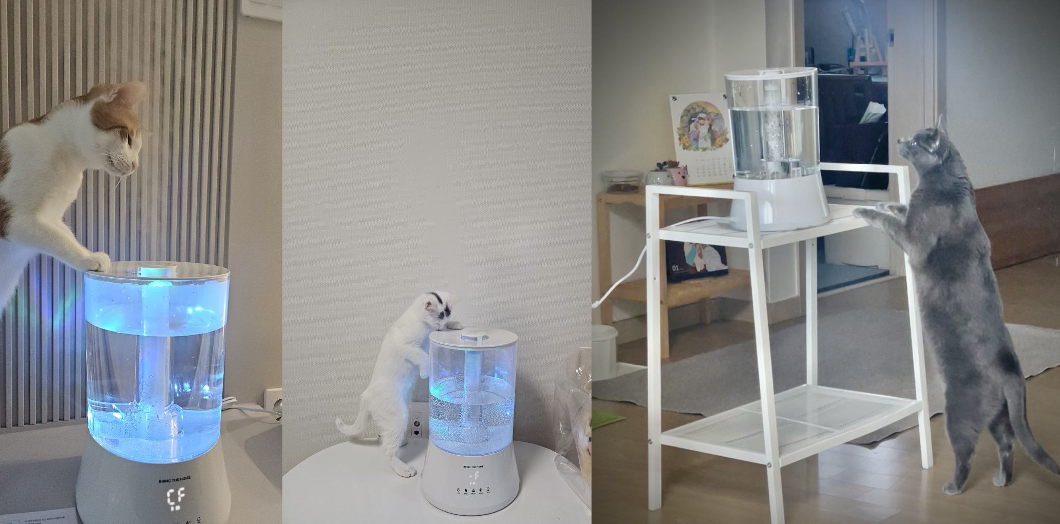반려 동물이 있는 공간에서도 제품이 넘어지는 일 없이 & 화상 걱정 없이 안심하고 습도 관리를 할 수 있습니다.