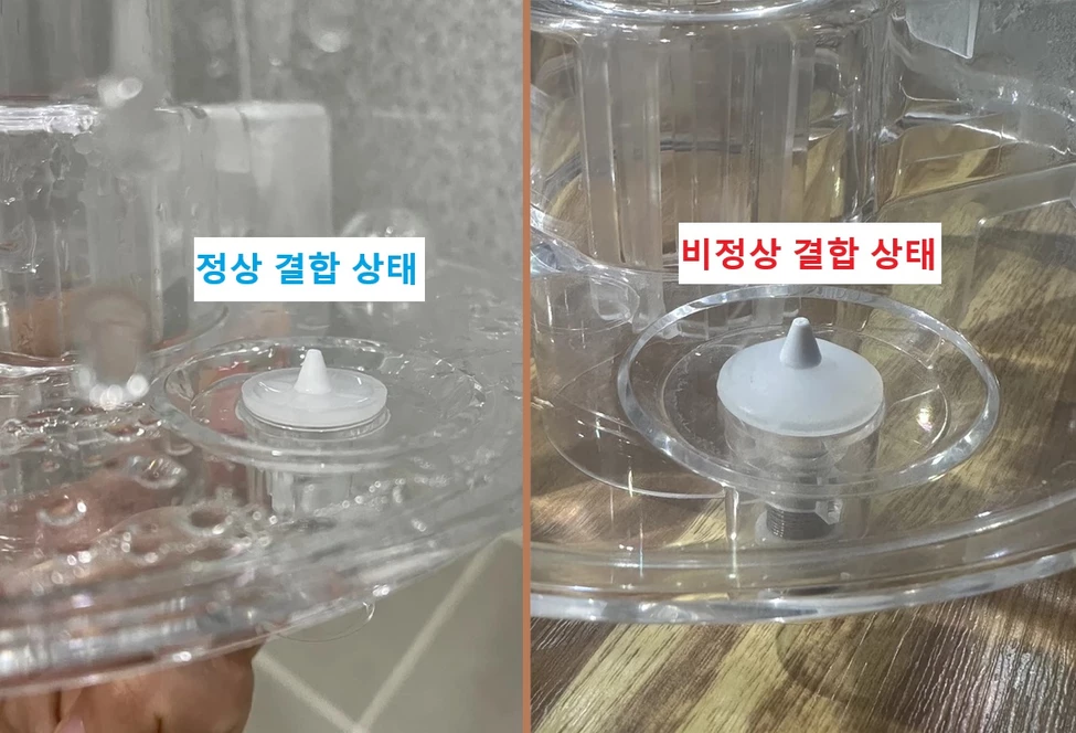 ☑️물통 마개가 거꾸로 끼워져 있는 경우, 급수가 원활하지 않을 수 있어요!