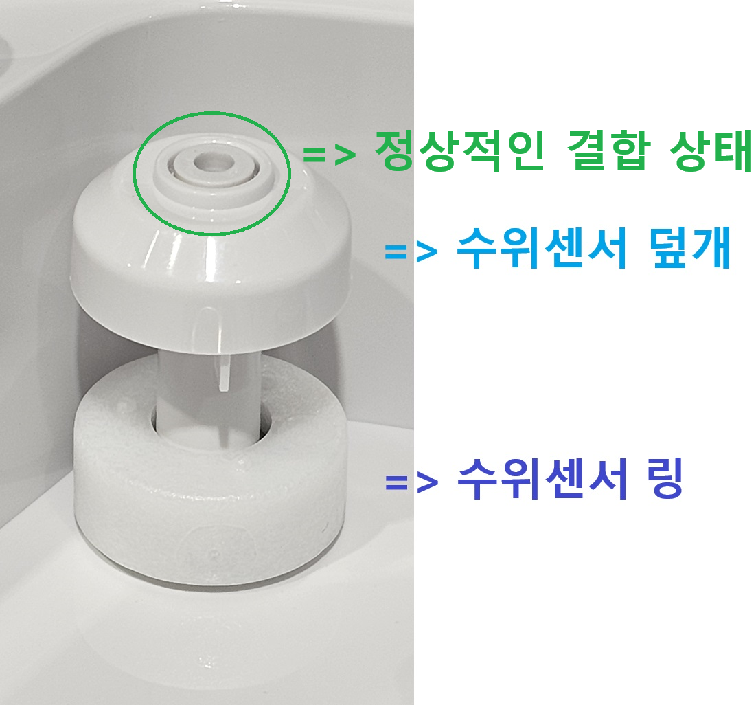또한, 수위센서 덮개가 딸깍 소리가 나도록 잘 끼웠는지 확인해 주세요!